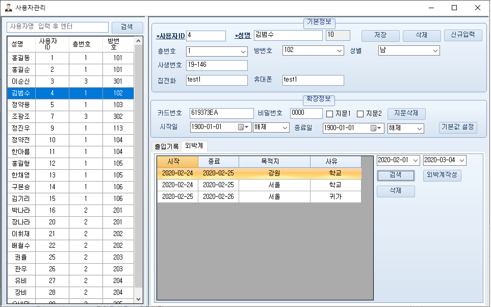 개발 단말기를 통한 기숙사 출입통제 프로그램